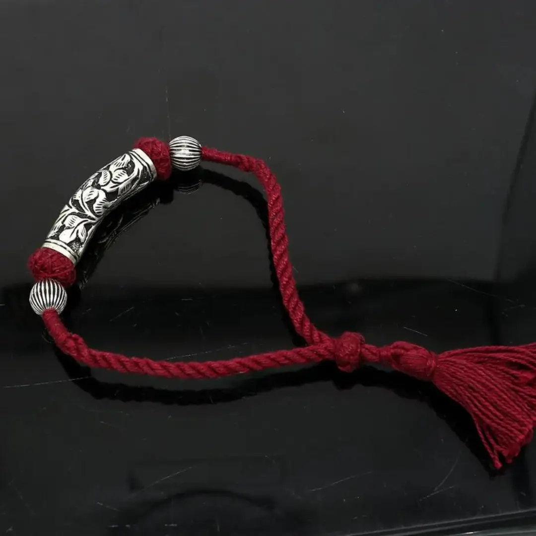 925 Pure Silver Chandi Oxidized Hollow Adjustable Tribal/Nakkashi Kada Bangle For Boys and Men in 92.5 Sterling Silver | Gift For Him |