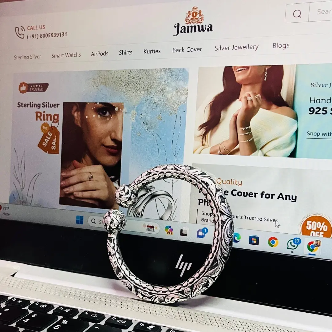 92.5 Exclusive Nazariya 925 Sterling Silver Bracelets Kada Bangle – Set of 2