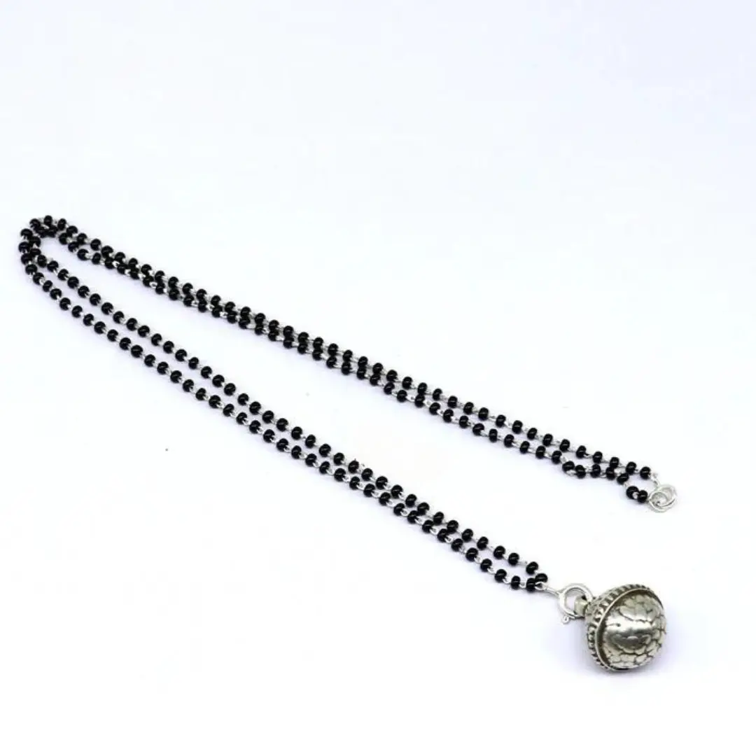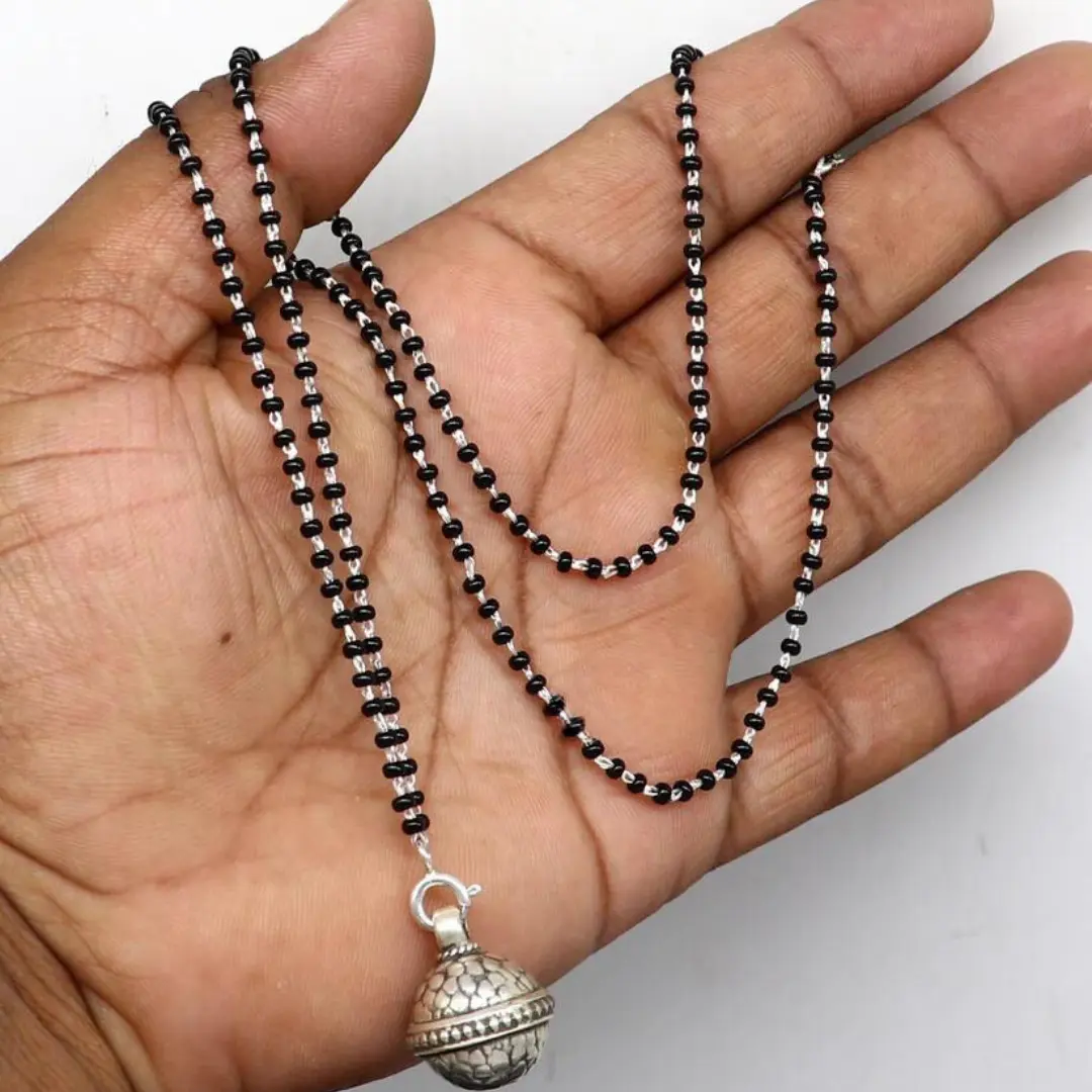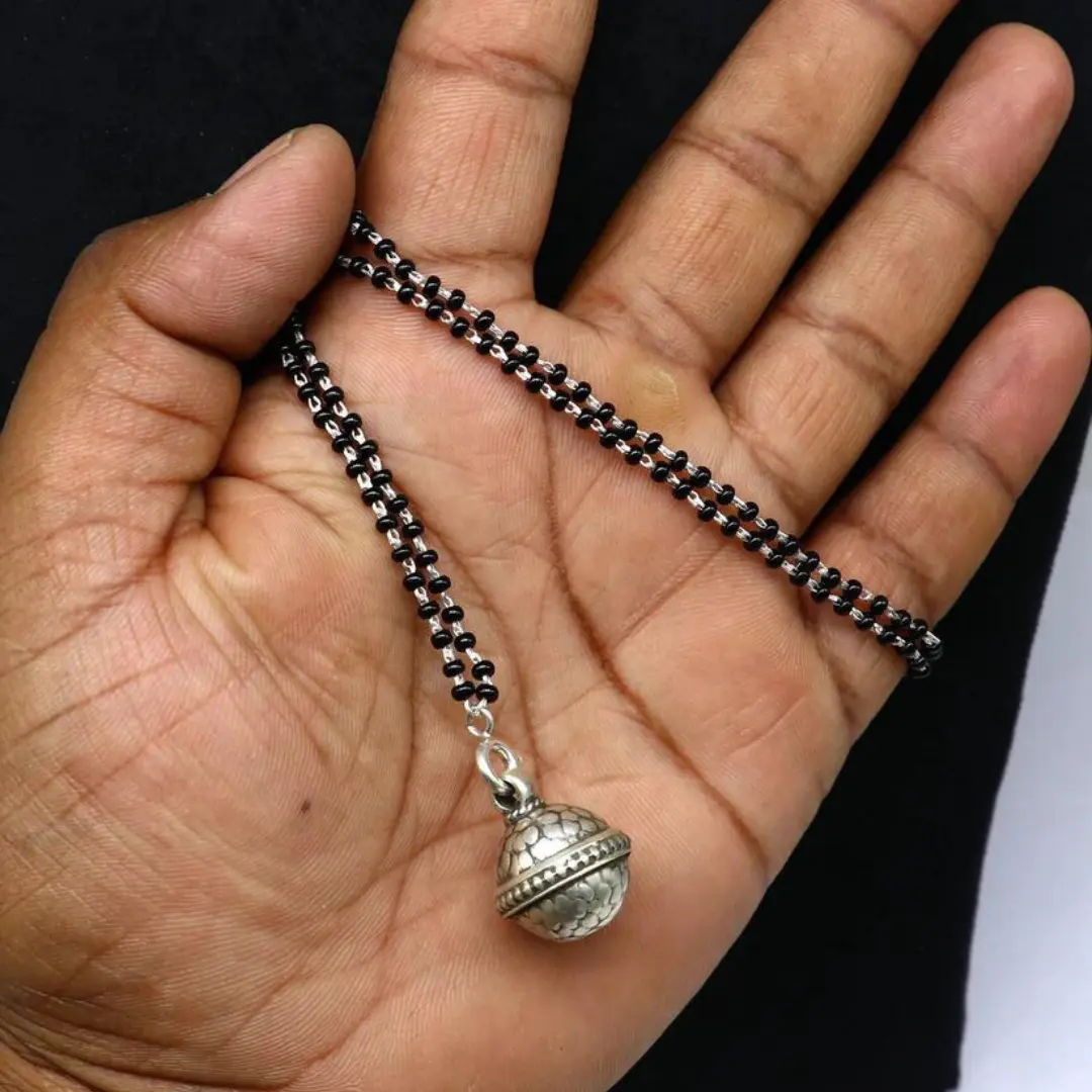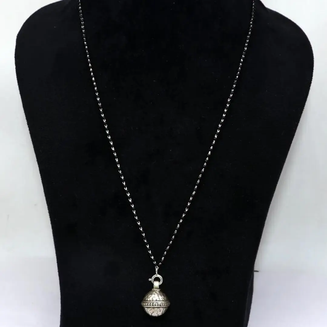 Introducing our Traditional Cultural Black Beads 925 Sterling Silver Stylish Single Ball Pendant Necklace: