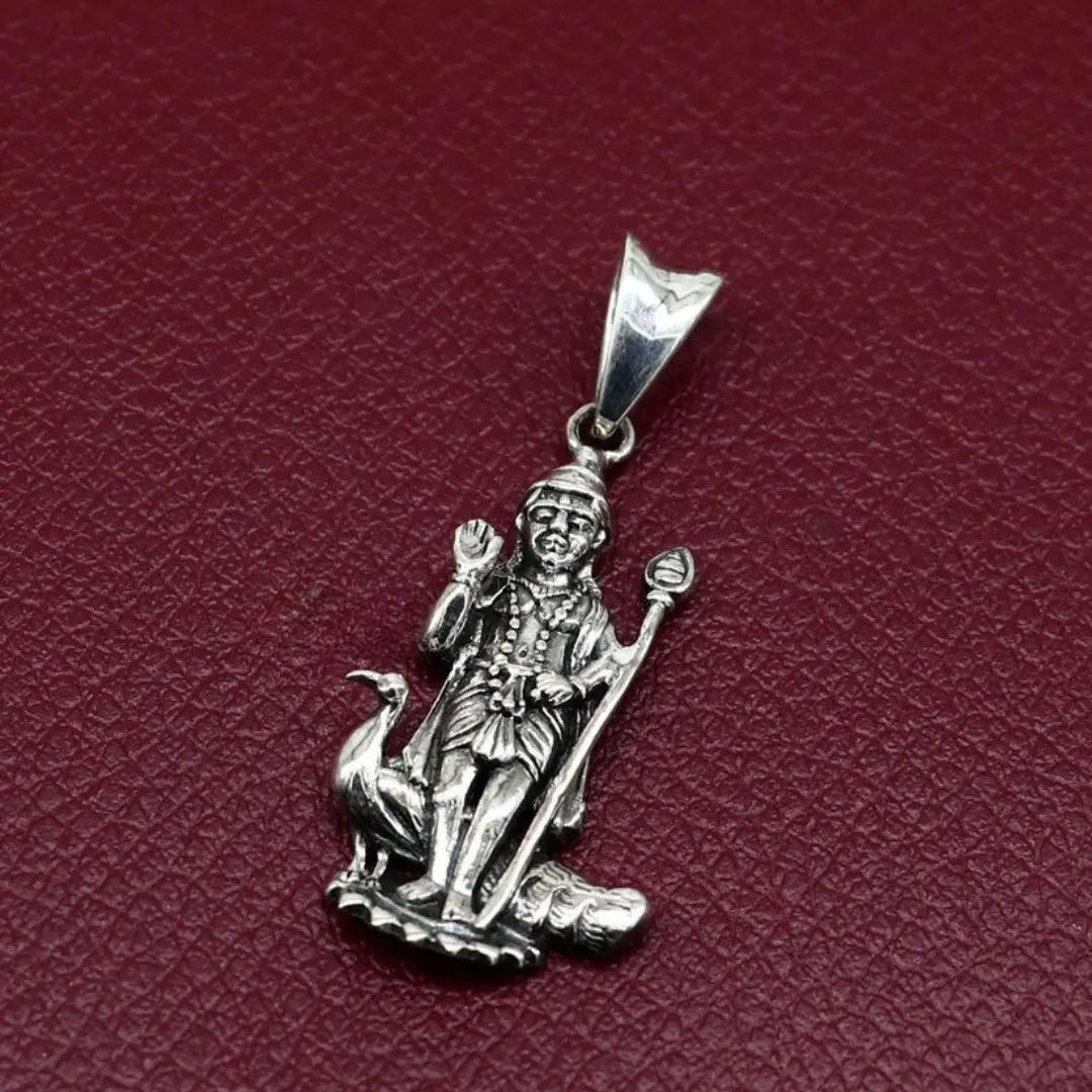 Description: Introducing our exquisite 925 Sterling Silver Divine Lord Murugan Kartikeya Pendant, a masterpiece of vintage design and expert craftsmanship. This elegant handmade jewelry piece showcases the divine charm of Lord Murugan, also known as Kartikeya, the God of War and Victory.